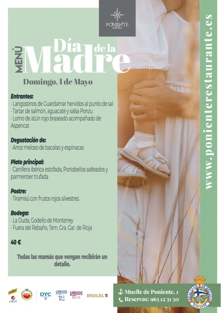 El domingo, 1 de mayo, disfruta del maravilloso Menú Especial que hemos diseñado en Poniente para celebrar el Día de la Madre.