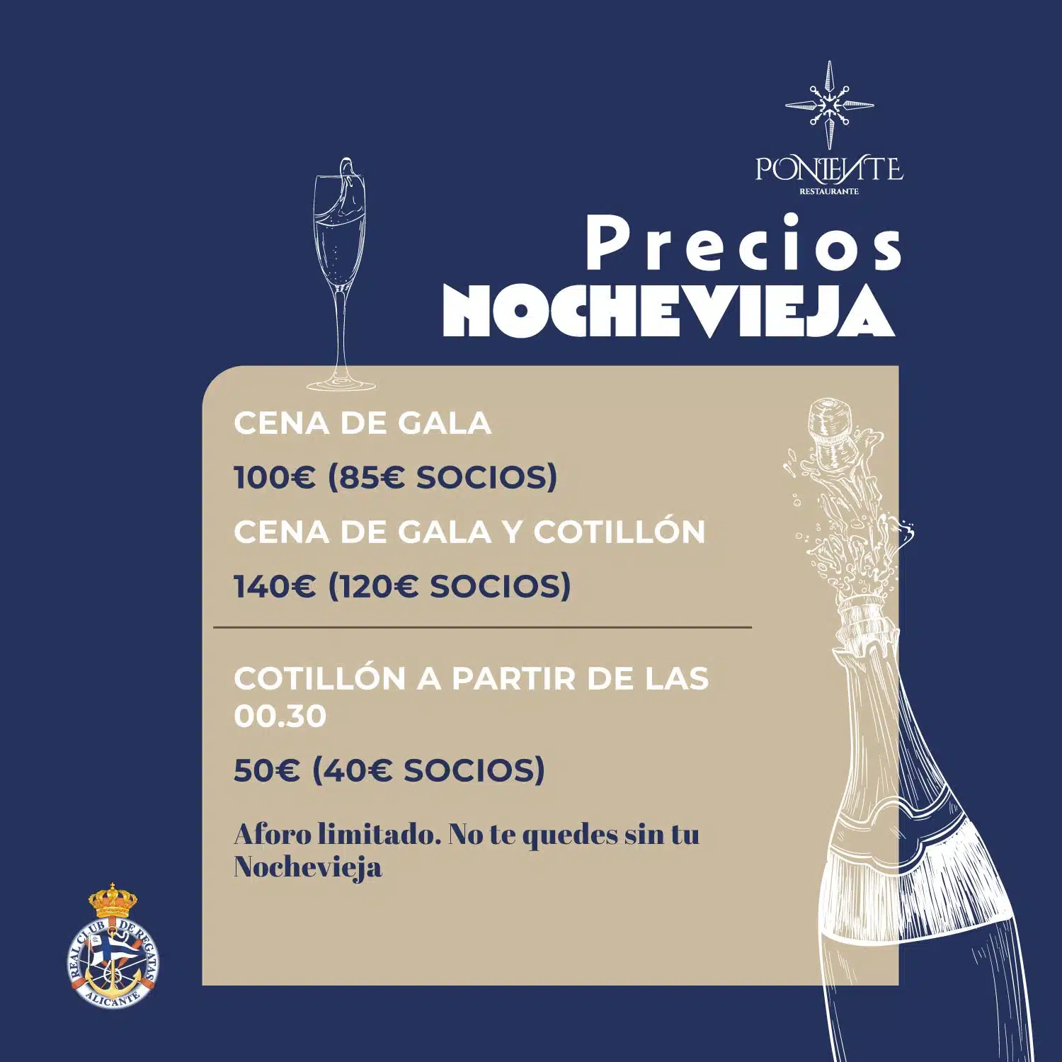 El precio de los menús será de 35 € para los socios del Club y de 40€ para los no socios.